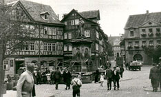 Gegenüber vom Rathaus werden der Ratsweinkeller und die angrenzenden Fachwerk-Häuser abgerissen